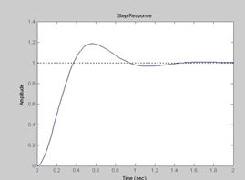 4 . Величина ошибки по скорости определяется как e ск =V 1 / K . Для ориентировочной оценки tпп и σ следует построить переходной процесс h ( t ) (оператор stepв MATLAB) при v ( t ) = 1[ t ] и по нему определить tпп и σ.