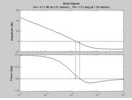 На рис.2.4 представлена диаграмма Боде исследуемой дискретной системы с отмеченными на ней запасами устойчивости по амплитуде и фазе.