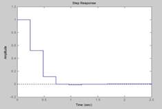 5. При входном воздействии вида v ( k ) = l[k] переходный процесс взамкнутой системе можно вычислить с помощью моделирования импульсной системы в Matlab. Для этого необходимо задать передаточную функцию непрерывной части системы в tf - или zpk -форме, преобразовать ее в дискретную с помощью оператора c 2 d при заданном времени дискретизации T , а затем построить переходной процесс системы оператором step . Так же можно построить и логарифмические частотные характеристики импульсной системы -bode . Если задана передаточная функция замкнутой системы в виде: