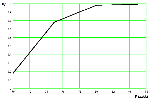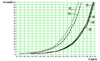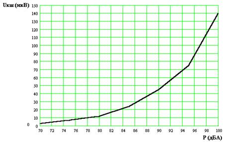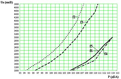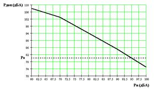 Рис. П.5.1. Зависимость допустимого значения звукового давления от величины звукового давления развиваемого в месте установки телефонного аппарата "Телур"