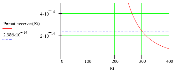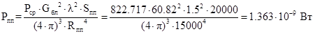 Расчёт средней мощности излучения постановщика выполняется из условия согласования по мощности сигналов помехи и реального сигнала на входе приёмного устройства. Мощность сигнала помехи на входе РПрУ должна находиться в пределах 2·Pmin
