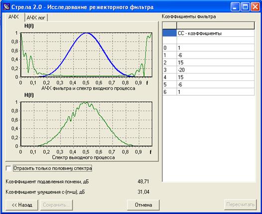 Для расчёта параметров режекторного фильтра воспользуемся пакетом «Стрела 2.0»: