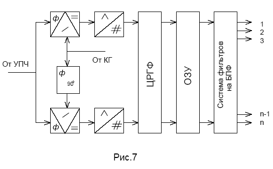, где m- число разрядов АЦП. Если быстродействия АЦП не хватает, то переходят к ЦРГФ в виде комплексных фильтров с двумя квадратурными каналами, в которых включены два АЦП.