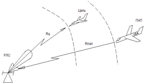 При удалении цели на расстояние больше чем Rцmin отношение с/ап уменьшается и не достаточно для обнаружения цели. При приближении цели меньше чем на Rцmin от РЛС, с/ап возрастает что создает условия для обнаружения цели. Важным фактором здесь является соотношение мощности передатчика РЛС и постановщика АП.