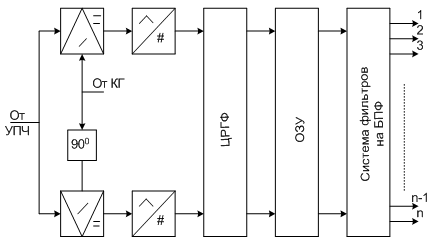 , где m- число разрядов АЦП. Если быстродействия АЦП не хватает, то переходят к ЦРГФ в виде комплексных фильтров с двумя квадратурными каналами, в которых включены два АЦП.