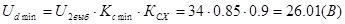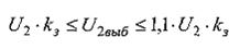 где U2 min – минимальное напряжение на вторичной обмотке трансформатора, В;