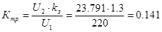 Кр = 0.2 – коэффициент регулирования входного напряжения.