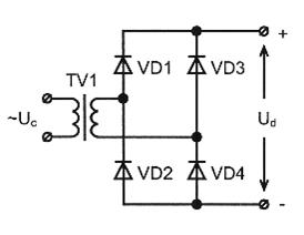 Выпрямитель преобразует переменное напряжение вторичной обмотки трансформатора U2 в выпрямленное пульсирующее напряжение Ud .
