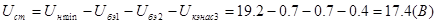 Ucmmin –минимальное падение напряжения на регулирующем транзисторе, необходимое для обеспечения линейного режима данного транзистора, 2.6 В.