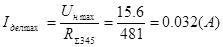 Далее пересчитываем максимальный ток делителя с учетом значений сопротивлений резисторов R3, R4, R5, выбранных из стандартного ряда Е24: