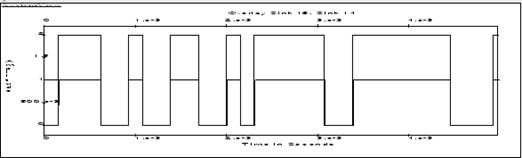 На рисунке 1.3-1.5 представлена модель передачи сигнала с помощью ОФМ-4 модуляции. Устройство модулятора состоит из Элемента XOR , который сравнивает текущий и предыдущий биты. Он меняет значения с 1 и -1 или наоборот, если на текущий бит=1, и не меняет значения, если текущий бит=0. Далее сигнал накладывается на синусоиду. Демодулятор осуществляет детектирование, затем перемножение с сигналом, задержанным на длину 1 бита, результат фильтрует. Фиксируем результат в начале битового интервала и по его значению определяем значение передаваемого бита.