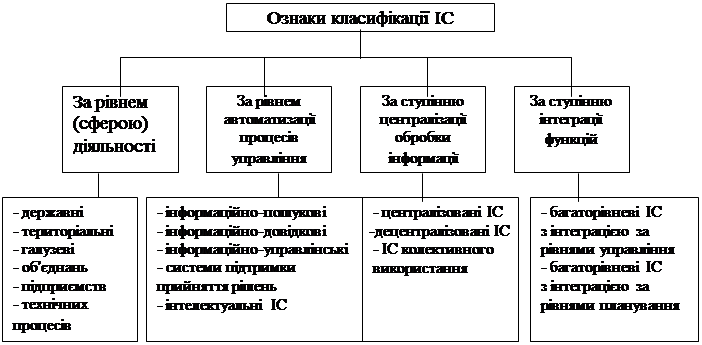 ІС можуть значно різнитися за типами об'єктів управління, характером та обсягом розв'язуваних задач та іншими ознаками (рис. 1).