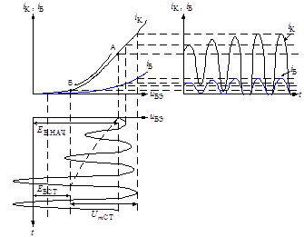 Если рабочая точка находится на участке характеристики i K = f (u БЭ ) с малой крутизной S < SMAX , то режим самовозбуждения называется жестким.