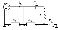 При возрастании амплитуды колебаний постоянная составляющая тока базы I Б 0 увеличивается и смещение Е Б уменьшается по величине, достигая значения Е БСТ в установившемся режиме. Конденсатор С Б предотвращает короткое замыкание резистора R Б1 по постоянному току.