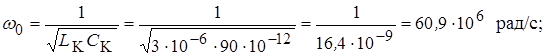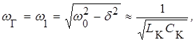 Для ее определения вычислим резонансную частоту контура и коэффициент затухания контура: