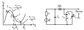 Рис.7. Вольт-амперная характеристика и схема генератора на туннельном диоде