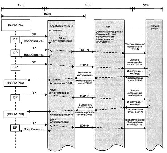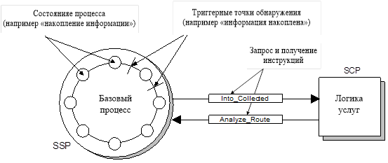 В соответствии с рекомендациями ITU-T серии Q.1200 [2] для построения такой системы управления удобно использовать базовую модель состояний вызова (BasicCallStateModel, BCSM), которая идентифицирует состояния вызова и всего процесса установления соединения, в которых допускается взаимодействие с логикой услуги IN.