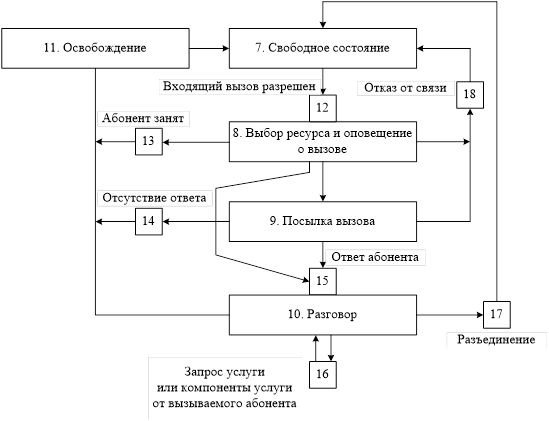 Выход из этого состояния происходит под воздействием следующих событий: входящий вызов разрешен, отказ входящей связи.