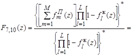 Подставляя значения производящих функций путей и контуров в формулу (4.8) в результате получим, что производящая функция установления соединения (перехода из исходного состояния S7 в состояние разговора S10) может быть записана следующим образом