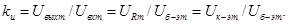 Коэффициент усиления каскада по напряжению равен отношению амплитудных или действующих значений выходного и входного переменного напряжения. Входным является переменное напряжение база - эмиттер Uб-э , а выходным - переменное напряжение на резисторе нагрузки UR , что соответствует напряжению между коллектором и эмиттером Uк-э :