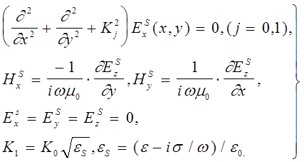 Здесь индекс j=0 относится к волновому уравнению в вакууме, а j=1 - к волновому уравнению в среде с потерями. Кроме того, величины e