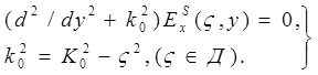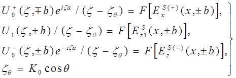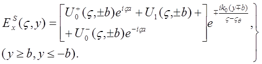 Найдем теперь Фурье-компоненты рассеянной волны. Прежде всего посредством перехода к прямому преобразованию Фурье в волновом уравнении (3) при | y | ³b можно получить следующее уравнение: