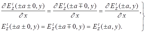 причем считаем, что каждая электромагнитная волна при | y | £b удовлетворяет следующим соотношениям: