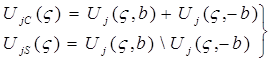 Здесь члены рядов представляют собой частные решения. Кроме того, неизвестные функции, снабженные нижними индексами C , S , представляют собой, с учетом свойств четности в соотношениях (10), следующие выражения ( j=0, 1):