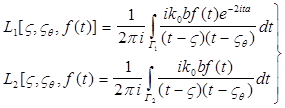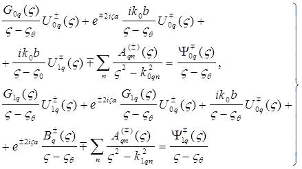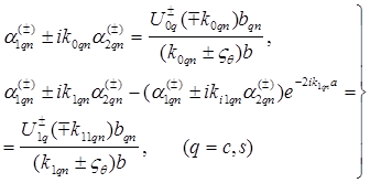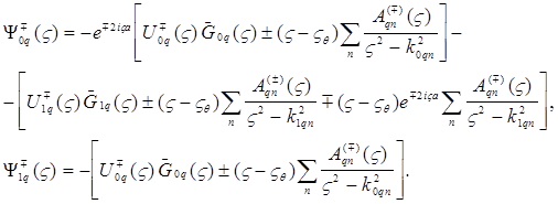 В заключение обсудим коэффициенты разложений в формулах (14). Как отмечалось и при разъяснении формул (6), выступающих в качестве определений, за исключением членов, связанных с падающей волной (известные выражения), функция