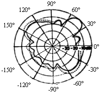 На рис.10 представлены результаты, которые относятся к случаю, когда ширина равна ширине рассеивающего тела, приведенной на рис.8, а толщина в два раза меньше; угол падения выбран равным 45°. Очевидно, что в той мере, насколько мала толщина, отраженная волна в направлении j= 135° слабее волны, отраженной под углом j= -45°. И в этом примере измеренные значения для отраженной волны хорошо согласуются с рассчитанными значениями.