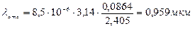 Диаметр сердцевины ОВ 2а=8,5 мкм.