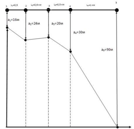 l1 = 0,5 км l2 = 0,6 км l3 = 0,5 кмl4 = 1 км