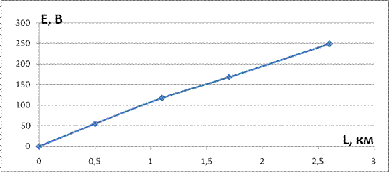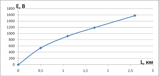 Также был произведен расчет внешних влияний на кабельную линию. Он показал, что в аварийном режиме работы наведенная ЭДС в оболочке кабеля удовлетворяет норме, а в нормальном режиме работы она превышает значение нормы. Поэтому пришлось проводить меры защиты, т.е. был произведен расчет расстояния, на которое нужно отнести кабель для его защиты от влияний ЛЭП – акр. Наведенная ЭДС удовлетворяет норме Енорм=42В при акр=760м.