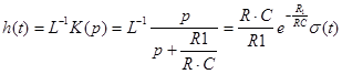 Графическое изображение импульсной характеристики апериодического звена приведено в приложении Б на рисунке Б.3
