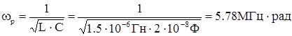 L=1.5мкГн=1.5×10-6 Гн, C=20000пФ=2×10-8 Ф,