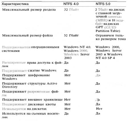- NTFS 5.0 применяется в Windows 2000 и WindowsServer