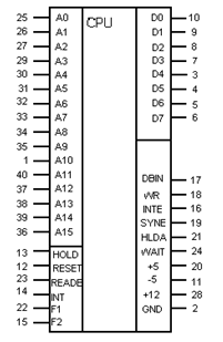 Таблица 1.Назначение выводов микропроцессора КР580ВМ80