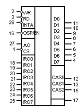 В проектируемой МПС обслуживание прерываний осуществляет один контроллер ВН59. Он подключается к 8-разрядной системной шине данных (ШД), а также к шине управления (ШУ). Для адресной выборки внутренних регистров используется линия адреса А0 от шины адреса (ША). К входам IR0-IR7 подключаются контроллеры, которым необходимы прерывания. Так как каскадирования не требуется, поэтому инверсный вход SP/EN заземляется.