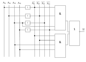В качестве анализа четырех старших разрядов шины адреса можно использовать дешифратор двоично-десятичный, который получив двоичный код на входе активирует выход с соответствующим номером.