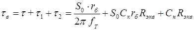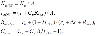 Для определения параметров каскада в области ВЧ следует воспользоваться соотношениями для каскада с ОЭ без ООС, принимая во внимание, что при расчете постоянной времени каскада