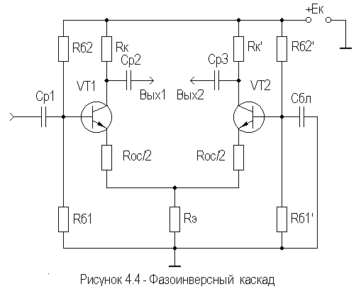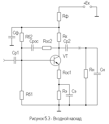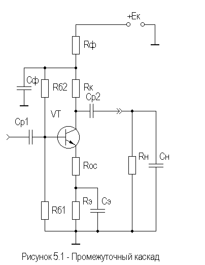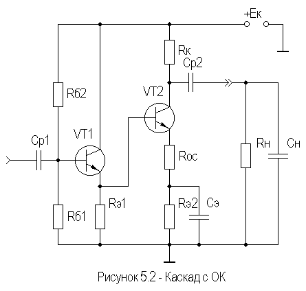 рассчитываемого каскада возможно применение каскада с ОК. Вариант схемы предоконечного каскада с ОК и непосредственной межкаскадной связью приведен на рис.5.2.