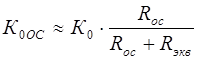 - соответственно, коэффициент усиления, эквивалентное сопротивление и сопротивление базового делителя каскада с ОЭ без ООС.