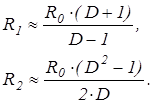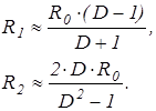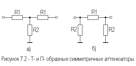 Для П-образной схемы аттенюатора номиналы элементов определяются из следующих соотношений:
