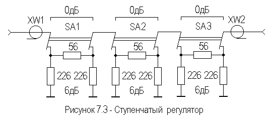 Практическая схема ступенчатого регулятора на 18 дБ для 75-омного тракта передачи приведена на рис.7.3.