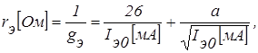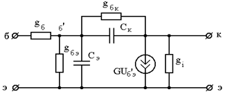 Значения элементов схемы Джиаколетто могут быть рассчитаны по паспортным данным транзистора по следующим формулам [1]: