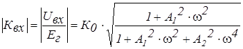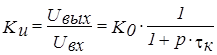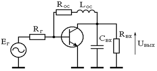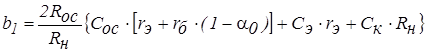 При отсутствии реактивности нагрузки, полоса пропускания каскада определяется параметрами транзистора. В соответствии с [1] коэффициент усиления каскада в области верхних частот можно описать выражением: