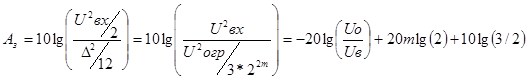 Теперь рассчитаем реальную величину защищенности от помех квантования: