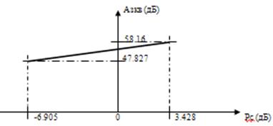 Вывод: Для обеспечения требуемой защищенности необходимо использовать 9 разрядов. При этом характеристика будет линейно возрастать и лежать выше Азкв.тр.