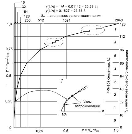 Рис.8 Амплитудная характеристика неравномерного квантующего устройства
