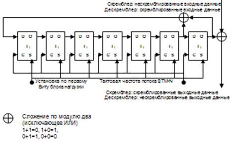 Вывод: операция скремблирования заключается в сложении по модулю 2 информационной последовательности и ПСП, что используется для решения проблемы выделения синхросигнала при больших пакетах нулей в кодовой последовательности. Для определения параметров качества цифровых каналов и трактов используют методы контроля ошибок с помощью кодов BIP и CRC